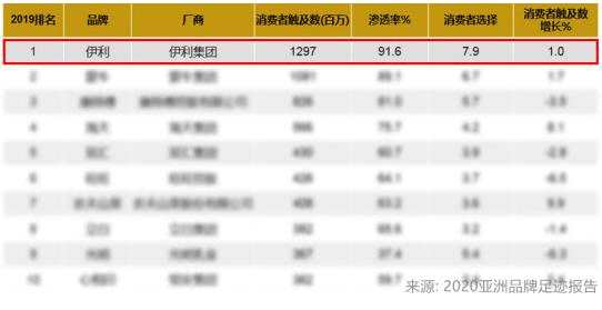 伊利連續(xù)五年位列中國(guó)市場(chǎng)消費(fèi)者選擇最多的品牌榜首