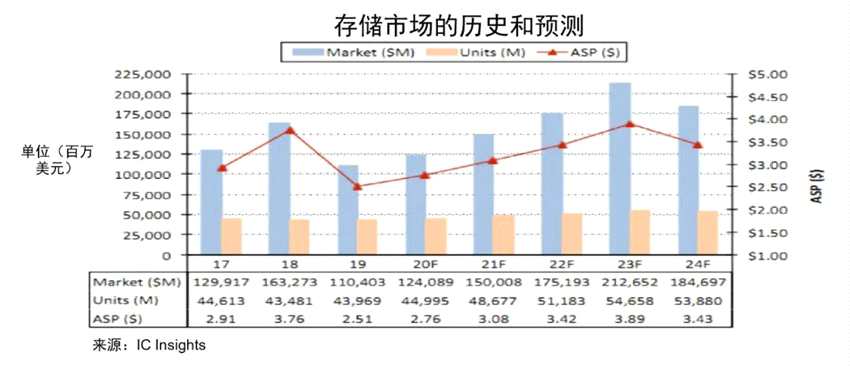存儲器作為電子元器件的重要組成部分,在半導(dǎo)體產(chǎn)品中占有很大比例。根據(jù) IC Insights 統(tǒng)計(jì),即使全球市場持續(xù)受到 COVID-19 的影響,存儲產(chǎn)品的年增長率仍將突破 12%,達(dá)到 124.1B$,并且在數(shù)據(jù)中心和云服務(wù)器應(yīng)用上發(fā)展巨大。根據(jù)其預(yù)測,在不久的將來,存儲的需求將保持 10.8% 的增長率,同時(shí)均價(jià)也將以 7.3% 的年增長率逐年上升,將成為芯片行業(yè)最大增長點(diǎn)之一。