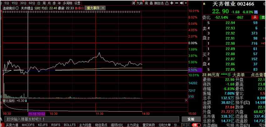 11月16日開盤,市值300億的白馬股天齊鋰業(yè)(002466)因債務(wù)違約跌停,隨后打開跌停板,截至發(fā)稿,跌至6.83%,報(bào)價(jià)22.9元/股,成交金額30.02億元,換手率8.99%