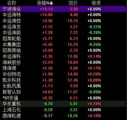 航運(yùn)概念板塊走強(qiáng) 寧波海運(yùn)、中遠(yuǎn)海特領(lǐng)漲
