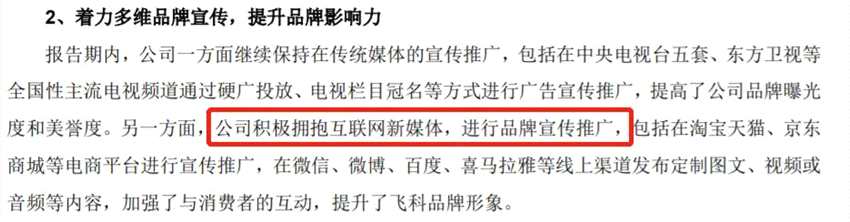 這一點其實很好理解,公司自己也說,多年來持續(xù)在央視五套、東方衛(wèi)視等全國性主流電視頻道通過硬廣投放、電視欄目冠名等方式進行強勢廣告宣傳,近年來有全面擁抱互聯(lián)網(wǎng)新媒體,幾乎包括所有大型互聯(lián)網(wǎng)平臺都有廣告投放。