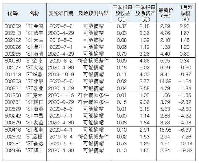 臨近年末ST股打響“保殼戰(zhàn)” 39只ST股或存摘帽行情