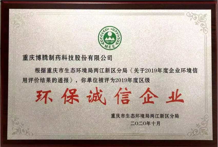 近日,重慶市生態(tài)環(huán)境局兩江新區(qū)分局發(fā)布《關(guān)于2019年度企業(yè)環(huán)境信用評價結(jié)果的公告》,經(jīng)過對轄區(qū)61家參評企業(yè)2019年度環(huán)境信用的評價,最終評定重慶博騰制藥科技股份有限公司(股票簡稱:博騰股份(300363),股票代碼:300363)等23家企業(yè)為本次環(huán)境信用評價中的最高等級―“環(huán)保誠信企業(yè)”。公司連續(xù)兩年獲得此榮譽,環(huán)保工作再次被予以肯定。