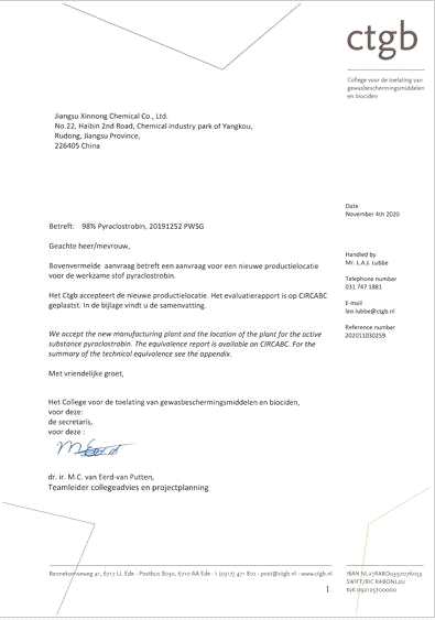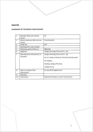 2020年11月,【新農(nóng)股份(002942)、股吧】(002942)全資子公司江蘇新農(nóng)化工有限公司生產(chǎn)的吡唑醚菌酯原藥順利通過歐盟等同認(rèn)定,這標(biāo)志著該產(chǎn)品可在歐盟各國市場進(jìn)行銷售。