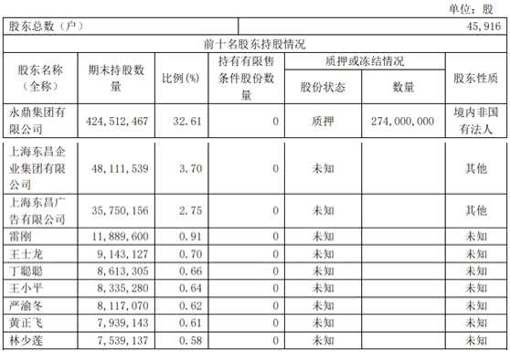 10月29日,永鼎股份披露的2020年第三季度報(bào)告顯示,截至2020年9月30日,永鼎股份前十名股東中,其控股股東永鼎集團(tuán)有限公司持股數(shù)量為4.25億股,持股比例為32.61%,其中,2.74億股為質(zhì)押狀態(tài)。