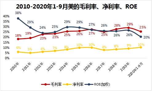 另外,據(jù)一致預(yù)測,2020年-2022年,美的營收規(guī)模將分別以1.73%、11.3%、9.05%的增速遞增;同期,利潤增速將分別達(dá)到4.61%、14.5%、12.62%。這一業(yè)績數(shù)據(jù)相比過往的17%,甚至近20%的增長來說,大為遜色。