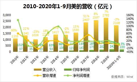 今年以來,由于疫情影響,美的前三季度實(shí)現(xiàn)營收2167.61億元,同比下降1.88%。與之相反的是,今年以來公司估值一路上漲。