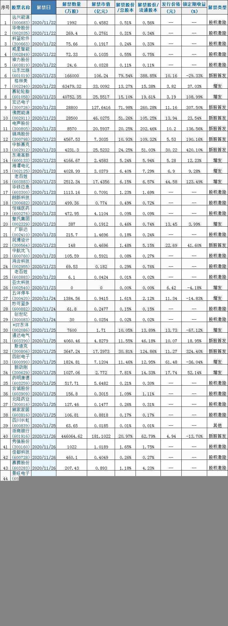 下周解禁:12月解禁市值近5000億元 “網(wǎng)紅”樂(lè)歌股份下周解禁