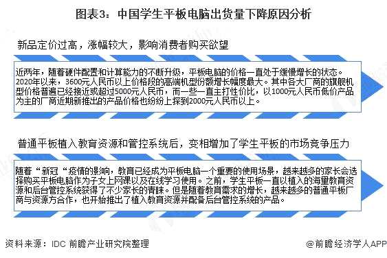 根據IDC分析認為,中國學生平板電腦出貨量下降主要是由于學生平板新品的定價過高,以至于在和越來越多植入教育資源的普通平板的競爭中缺乏價格優(yōu)勢。學生平板陷入“內憂外患”局面,導致其出貨量下滑明顯。