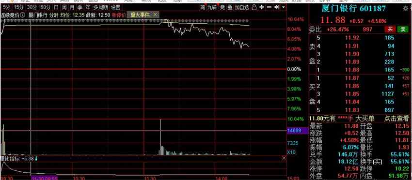 摘要: 11月30號(hào),銀行股集體轉(zhuǎn)弱,截止發(fā)稿,漲至0.3%,上午盤中最高漲至4.5%板塊內(nèi),早盤封板的廈門銀行(601187),于下午破板,截止發(fā)稿,漲至4.58%。
