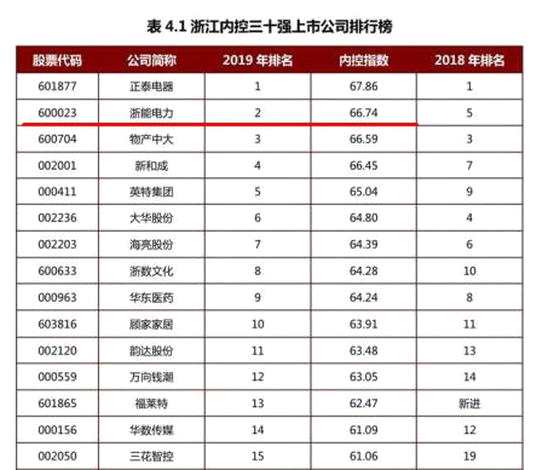11月21日,由浙江大學管理學院、浙江上市公司協(xié)會等聯(lián)合主辦的“健康力量觀察2020年上市公司高質量發(fā)展論壇暨浙江上市公司內部控制指數發(fā)布會”在浙大紫金港校區(qū)舉行。會上發(fā)布了《2019浙江上市公司內部控制指數報告》,揭曉了2019年度浙江上市公司最佳內控獎TOP30,浙能集團旗下上市公司――浙江浙能電力(600023)股份有限公司榮膺第二名,較2018年上升3個名次。