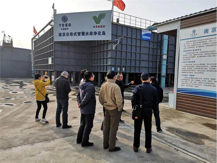 交流會后,與會領導和專家到由中電環(huán)保承建并運營的南京分布式智慧水體凈化島項目以及江寧區(qū)農(nóng)村污水處理設施(分散式設施)項目進行了實地收資、調(diào)研。