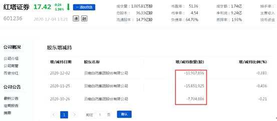 并且,按照云南白藥的減持情況以及減持前的份額,即截至12月2日,云南白藥已經(jīng)累計(jì)減持其持有的紅塔證券股份的79.54%。