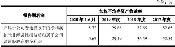 2018年、2019年、2020年上半年,聲迅股份凈資產(chǎn)收益率下滑猛烈。2016年至2020年1-6月,聲迅股份加權(quán)平均凈資產(chǎn)收益率分別為20.36%、52.65%、37.65%、29.68%、5.72%。