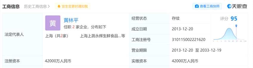 資料顯示,上蔬永輝是一家以經(jīng)營生鮮食品為主、加工、用品輔之的生鮮食品零售企業(yè),隸屬于上海上蔬永輝生鮮食品有限公司。