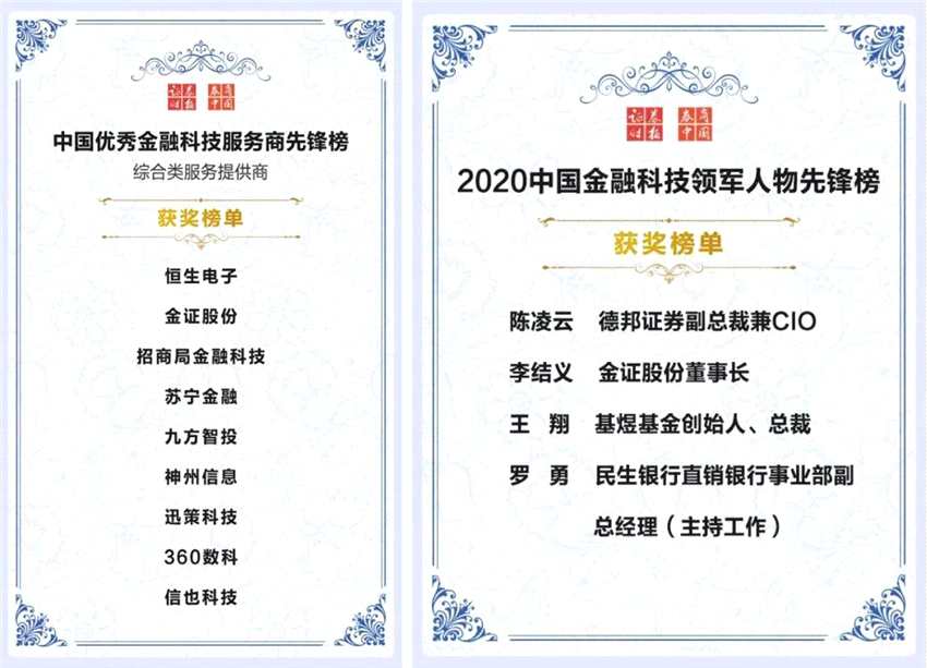 金證上榜!2020年中國(guó)金融科技先鋒榜正式揭曉