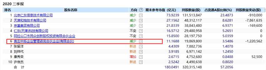 而到了2020年三季報,第六大股東崇左中爍企業(yè)管理咨詢合伙企業(yè)(有限合伙)較半年報大舉減持1220萬股,總股本比例下降0.21%。