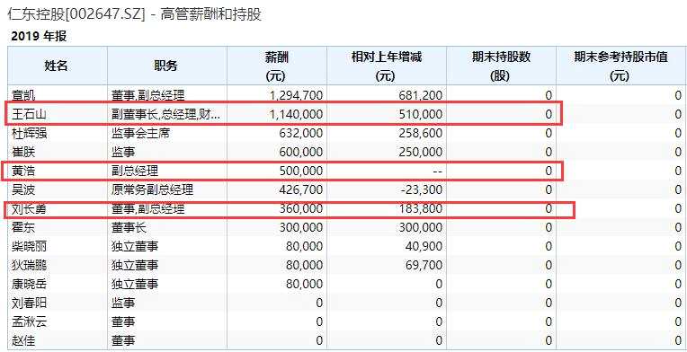 在2019年的年報中,仁東控股披露董監(jiān)高的持股數(shù)量時,這三位高管的持股數(shù)都是0,而此時的崇左中爍持有仁東控股1528萬股。