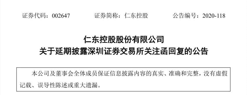 仁東控股表示,收到關(guān)注函后,公司高度重視、積極準(zhǔn)備回復(fù)工作。鑒于關(guān)注函中相關(guān)問題尚需進一步補充、完善,為確?;貜?fù)內(nèi)容的準(zhǔn)確性和完整性,經(jīng)向深圳證券交易所申請,公司將延期至12月23日前完成關(guān)注函回復(fù)。延期期間,公司將加快相關(guān)工作進度,盡快回復(fù)并履行信息披露義務(wù)。