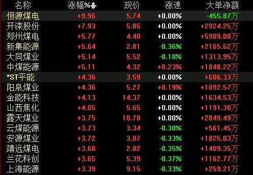 煤炭開采加工板塊拉升走強(qiáng) 恒源煤電漲停領(lǐng)漲