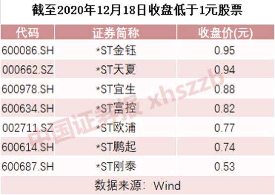 除了*ST剛泰、*ST金鈺,目前市場仍有多只“仙股”。數(shù)據(jù)顯示,截至12月18日收盤,共有7只股票的價格低于1元,且清一色為ST股。