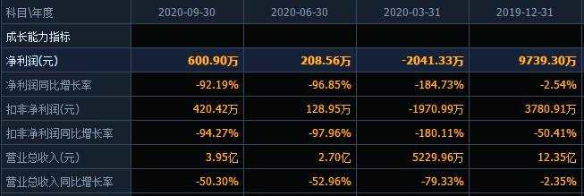 三季報數(shù)據(jù)顯示,今年前三季度,花王股份實現(xiàn)營收3.95億元,同比下滑50.3%;實現(xiàn)凈利潤600.90萬元,同比下滑92.19%;扣非凈利潤420.42萬元,同比下滑94.27%。