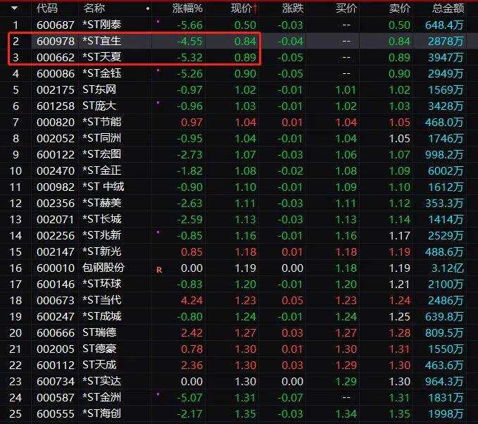 除了*ST剛泰和*ST金鈺鎖定面值退市,還有多只股票也比較危險(xiǎn)。*ST宜生(600978)、【*ST天夏(000662)、股吧】(000662)最新收盤價分別為0.84元、0.89元,分別連續(xù)5個交易日、4個交易日收盤價低于1元面值。
