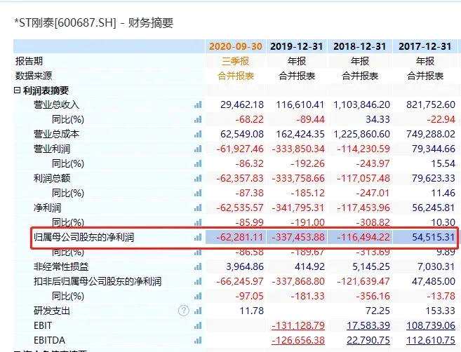 *ST剛泰已經(jīng)連年虧損,2018年虧11.65億元,2019年巨虧33.75億元,今年前三季度再虧6.23億元。