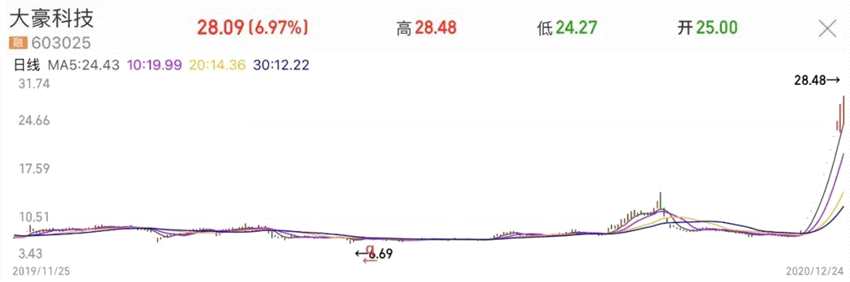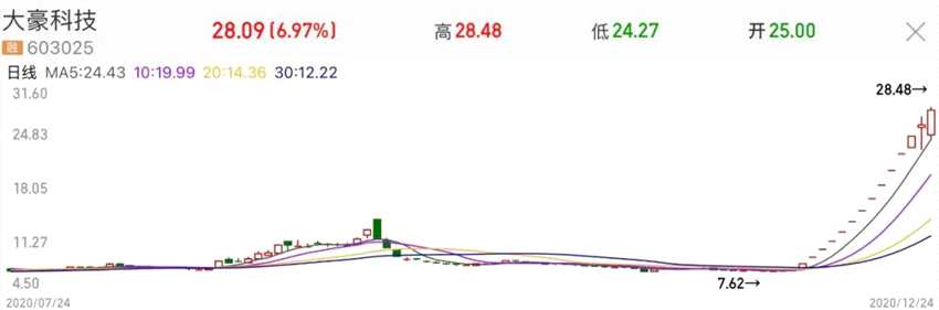 回看大豪科技此次上漲前的8元左右價(jià)格,再看目前的28元,已經(jīng)讓你高攀不起了!