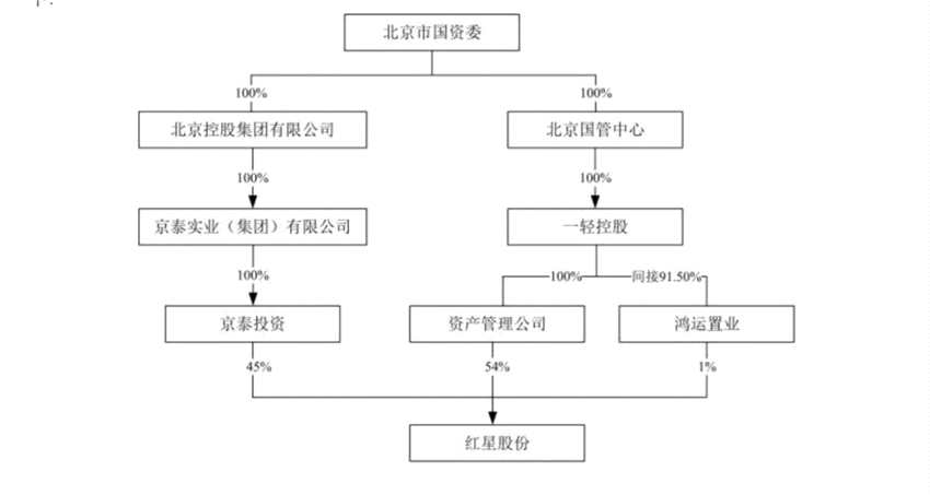 而大豪科技本次的交易標(biāo)的,首先是由一輕控股間接持股55%(通過一輕資產(chǎn)持有54%、鴻運(yùn)置業(yè)持股1%)、京泰投資持股45%的紅星股份。