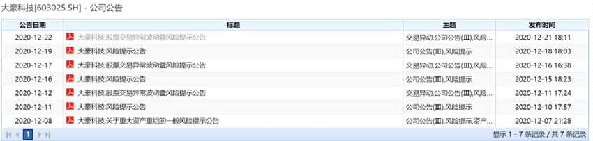 在交易所下發(fā)問詢函前,大豪科技自己已經(jīng)連發(fā)多個(gè)風(fēng)險(xiǎn)提示公告,且對于投資人質(zhì)疑的內(nèi)幕交易也發(fā)布了一些公告澄清,稱公司經(jīng)過查詢,從5月25日至12月17日期間,均未發(fā)現(xiàn)上市公司及其股東、交易對方的董監(jiān)高、中介人員及其直系親屬等,有交易該公司股票的行為。
