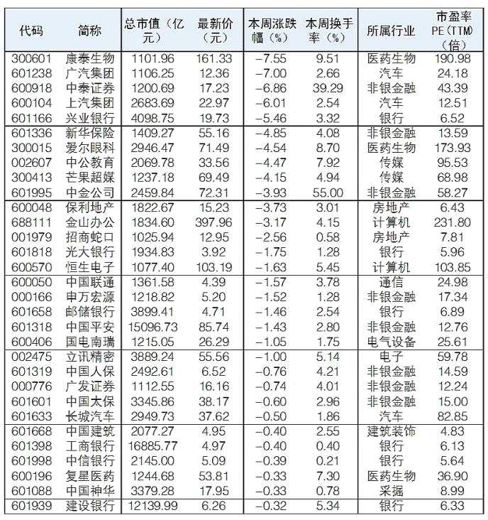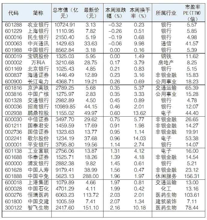 本周上證指數(shù)累計上漲2.24%,以昨日收盤來看,仍有61只千億市值藍籌股跑輸大盤。