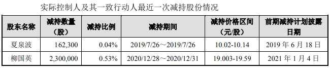 2019年7月26日,夏泉波減持了禾望電氣16.23萬股,減持比例0.04%;2020年12月28日至2020年12月31日,柳國英減持了禾望電氣230萬股,減持比例0.53%。