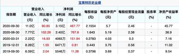 數(shù)據(jù)顯示,2020年上半年,公司實現(xiàn)高速增長,凈利潤約為2.40億元,同比增長767.60%,營業(yè)收入約為7.77億元,同比增長102.26%,基本每股盈利1.6430元,同比增長767.48%;2020年前三季度,寶萊特實現(xiàn)營業(yè)收入約11億元,從突破5億大關(guān),到突破7億大關(guān),再到突破10億大關(guān),寶萊特業(yè)績節(jié)節(jié)高升,全年財務數(shù)據(jù)值得期待。