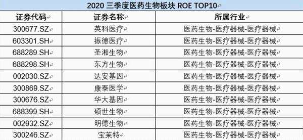國內(nèi)資本市場隨著新《證券法》正式實施、科創(chuàng)板試點注冊制走向常態(tài)化、創(chuàng)業(yè)板注冊制落地等迎來了新變革,同時A股IPO呈現(xiàn)井噴式發(fā)展,其中醫(yī)藥生物板塊先后受益于疫苗、試劑、診斷等熱門概念,長時間處于“明星板塊”的聚光燈之下,根據(jù)2020年三季報數(shù)據(jù)統(tǒng)計,A股醫(yī)藥生物板塊個股的平均ROE為8.90%,在全行業(yè)中排名第二。