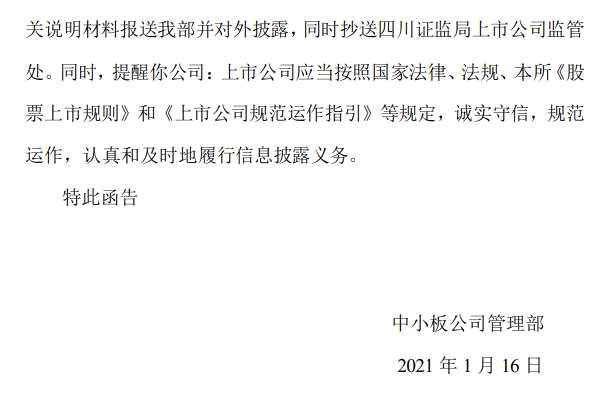 2021年1月16日,深交所向天齊鋰業(yè)發(fā)出關(guān)注函。