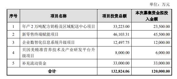 2020年8月26日發(fā)布的《非公開發(fā)行A股股票預(yù)案》顯示,貝因美將募資6000萬元,用于貝因美精準(zhǔn)營養(yǎng)技術(shù)及產(chǎn)業(yè)研發(fā)平臺項目。此次定向增發(fā),共募資12億元,投向年產(chǎn)2萬噸配方奶粉及區(qū)域配送中心項目、新零售終端賦能項目、企業(yè)數(shù)智化信息系統(tǒng)升級項目等五大項目。而精準(zhǔn)營養(yǎng)技術(shù)及產(chǎn)業(yè)研發(fā)平臺升級項目的實(shí)施主體,為貝因美研究院。