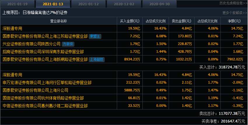 值得注意的是,此前1月12日、13日章盟主、方新俠分別合計買入約8.97億元、4.7億元,如果此前未及時出逃,則存在今日被埋可能。