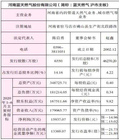藍(lán)天燃?xì)?申購(gòu)代碼707368 申購(gòu)日期1.20