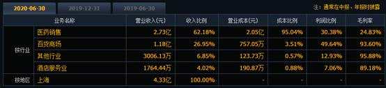 因此,雖然業(yè)績(jī)預(yù)告中表示酒店服務(wù)以及百貨商場(chǎng)業(yè)務(wù)由于疫情影響受挫較大,但公司大頭醫(yī)藥銷售業(yè)務(wù)也算間接受到疫情紅利,實(shí)現(xiàn)了較大增長(zhǎng),從而推動(dòng)公司業(yè)績(jī)實(shí)現(xiàn)超預(yù)期增長(zhǎng)。