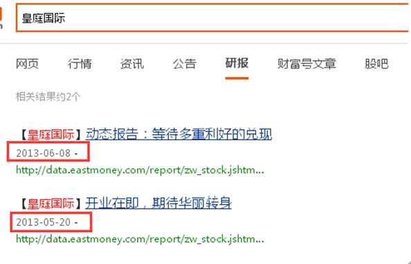 值得注意的是,互聯(lián)網(wǎng)平臺上,券商機構(gòu)針對皇庭國際的研報目前來看,也止步于2013年。