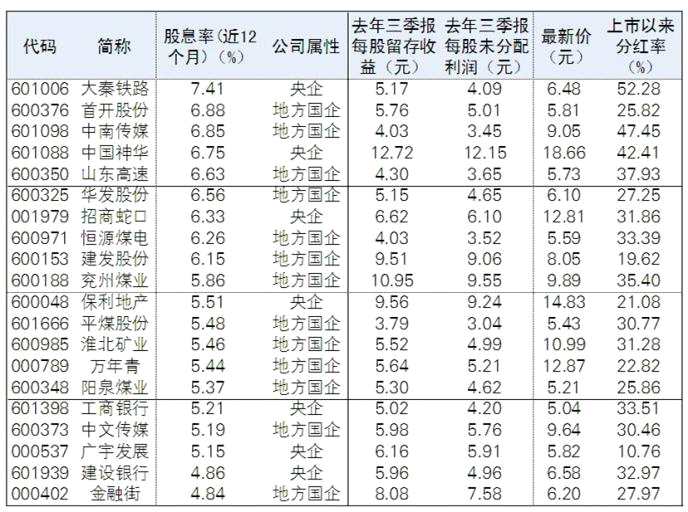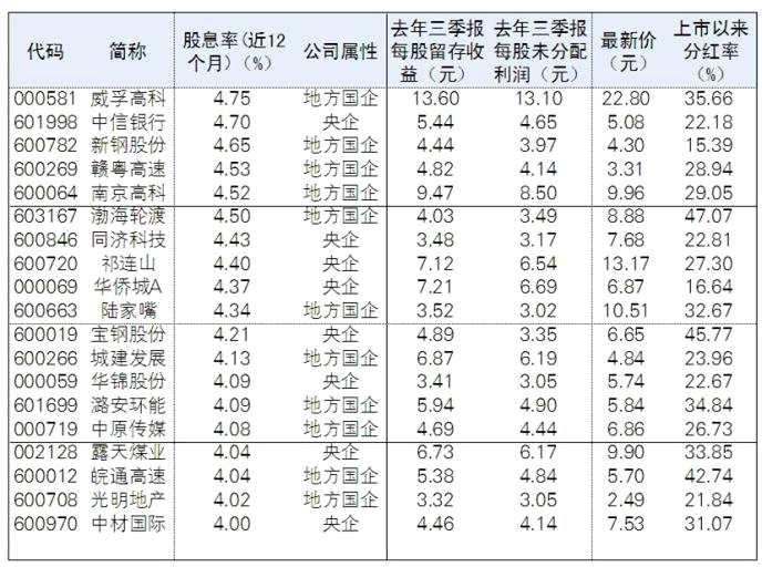 本周滬深兩市首份2020年年報大手筆分紅?!洞蟊娮C券報》編輯按2020年三季報每股留存收益大于3元,每股未分配利潤大于3元,近12個月股息率超過4%,且公司屬性為央企或地方國企為標(biāo)準(zhǔn)篩出,共計有39家公司存在高分紅可能。