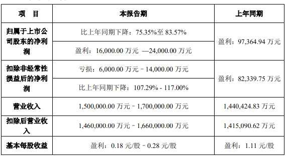 昨日晚間,東方日升披露2020年度業(yè)績(jī)預(yù)告補(bǔ)充公告顯示,公司預(yù)計(jì)2020年全年歸屬于上市公司股東的凈利潤(rùn)1.60億元至2.40億元,比上年同期下降75.35%至83.57%;扣除非經(jīng)常性損益后的凈利潤(rùn)6000.00萬(wàn)元至1.40億元,比上年同期下降107.29%至117.00%;營(yíng)業(yè)收入150.00億元至170.00億元,上年同期為144.04億元。