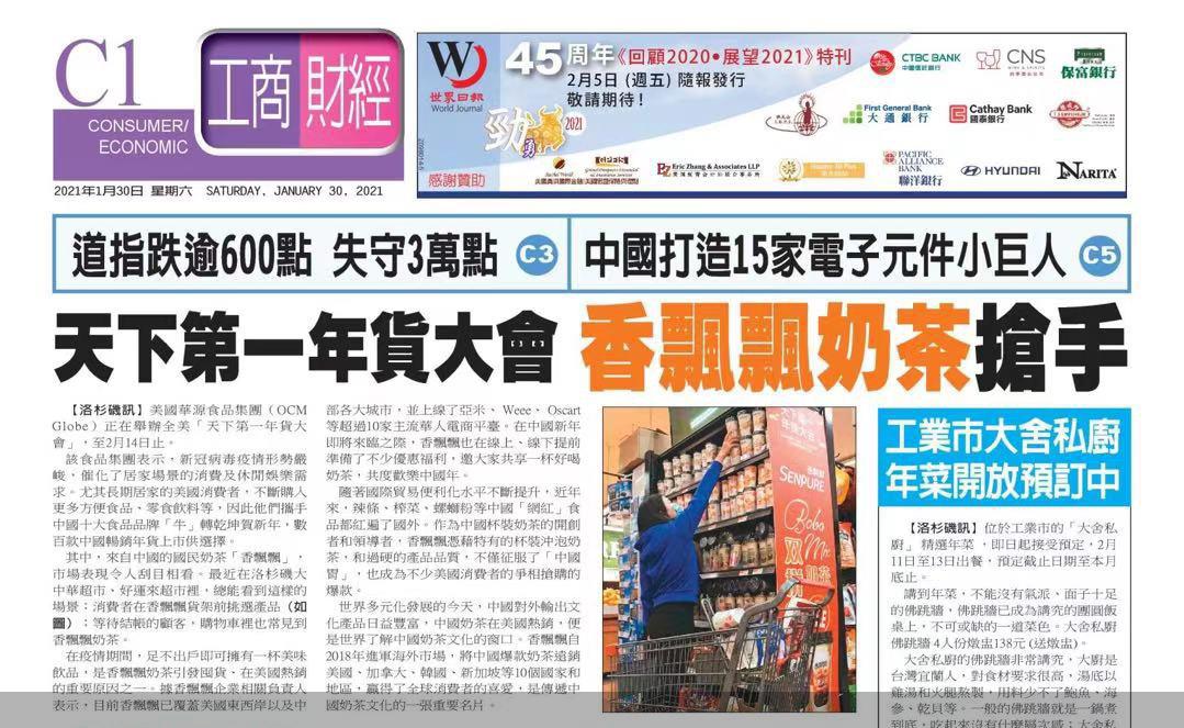 “一位中國(guó)朋友把香飄飄推薦給我,我和家人都很喜歡”“紐約已經(jīng)下雪了,天冷的時(shí)候泡一杯奶茶,方便又快捷”……疫情期間,居家消費(fèi)需求旺盛。在美國(guó)東西岸以及中部各大城市商超,許多外國(guó)消費(fèi)者的購(gòu)物車(chē)?yán)锒级褲M了香飄飄奶茶;香飄飄奶茶時(shí)常上架不久就被搶購(gòu)一空。亞米、weee oscart 等主流華人電商平臺(tái)上,海外買(mǎi)家們對(duì)香飄飄奶茶的評(píng)價(jià)也頗高。