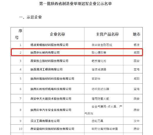 熱烈祝賀陜西步長制藥有限公司入列第一批陜西省制造業(yè)單項(xiàng)冠軍企業(yè)名單