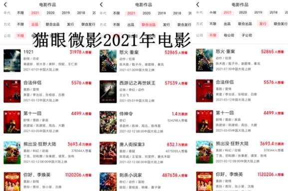 貓眼微影是《你好,李煥英》第三大出品方兼第二大發(fā)行方,是《唐人街探案3》第五大出品方,是《侍神令》第五大出品方兼聯(lián)合發(fā)行方,是《熊出沒(méi)·狂野大陸》第五大出品方兼第四大發(fā)行方,是《刺殺小說(shuō)家》第七大出品方兼聯(lián)合發(fā)行方。