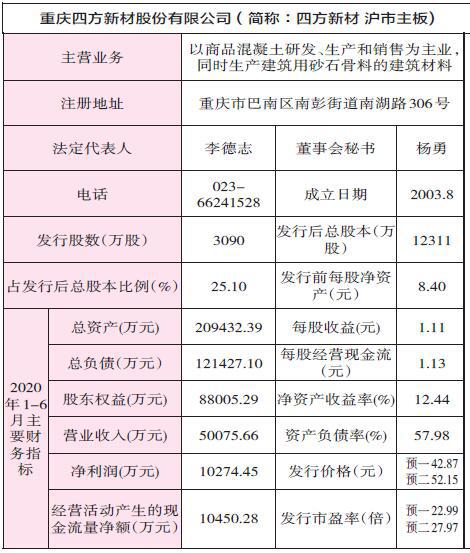 四方新材 申購(gòu)代碼707122 申購(gòu)日期2.26