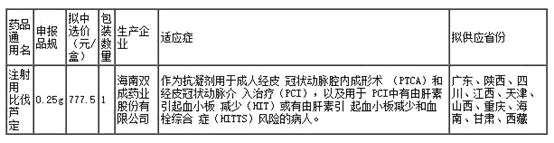 2月4日早間,雙成藥業(yè)發(fā)布公告,公司注射用比伐蘆定產(chǎn)品中標第四批全國藥品集中采購,擬供應10個省份。據(jù)悉,比伐蘆定是一種作用可逆的特異性凝血酶抑制劑。