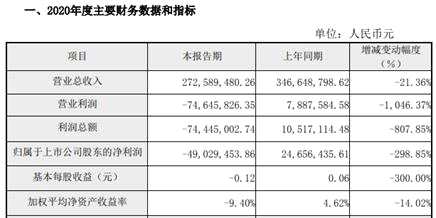 消費日報財經(jīng)訊 2月24日晚,雙成藥業(yè)(002693)披露2020年業(yè)績快報。公告稱,報告期內,公司實現(xiàn)營業(yè)總收入2.73億元,同比下降21.36%;營業(yè)利潤7464.58萬元,同比下降1046.37%;歸屬于上市公司股東的凈利潤-4902.95萬元,同比下降298.85%。