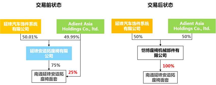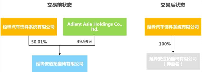 交易一:擬由延鋒公司(或其指定方)出資806,364萬元人民幣,收購安道拓之全資子公司Adient Asia Holdings Co., ltd.(以下簡稱:安道拓亞太)持有的延鋒安道拓49.99%股權。